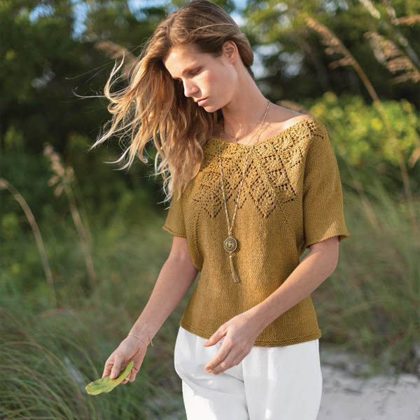 12 fina stickmönster på sommarens fina tröjor och toppar. Garn som används är bomull och lingarner.